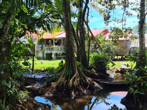 Hay una cabaña de madera (40 metros cuadrados) en la playa en la desembocadura del río en el mar caribe. Tiene sus propias instalaciones sanitarias, que puede utilizarse para relajarse y como punto de partida para actividades deportivas. Debido a la ubicación en las inmediaciones del río, la zona de agua salobre y el océano existe la posibilidad de pescar. También hay una instalación para la producción de aceite de coco para el autoabastecimiento.